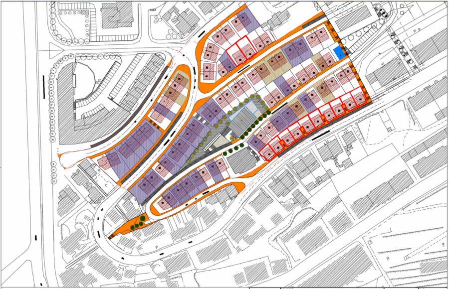 Deste modo as novas edificações implantam-se no lugar das existentes, mantendo as cotas de soleira existentes e respeitando o polígono de implantação das habitações originais, somente reajustado na profundidade da intervenção.