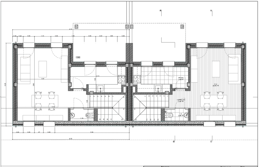 As habitações/edifícios a intervencionar do Tipo B1, contemplam a demolição da habitação existente e a construção de uma nova – 12 de tipologia T3 com 108,56m2 de área bruta de construção e 60,56m2 de área de implantação; e 2 de tipologia T4 com 122,10m2 de área bruta de construção e 61,05m2 de área de implantação.